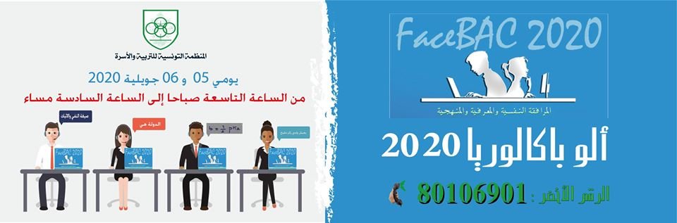 في إطار رسالتها التربوية والمجتمعية ومساعدة استعدادات أبناءنا التلاميذ في تحضيرهم لاجتياز امتحان الباكالوريا للسنة الدراسية 2019/2020 عبر برنامجها “آلو باكالوريا”، تعلم المنظمة التونسية للتربية التلامذة المترشحين ببرنامجها “آلو-باكالوريا” يوميْ الأحد والإثنين 5و6 جويلية 2020 من الساعة التاسعة صباحا إلى الساعة السادسة مساء لمساعدة المترشحين على الإعداد النفسي والمنهجي والعلمي الجيد للمناظرة و ضمان أوفر حظوظ النجاح من خلال طرح تساؤلاتهم واستفسارتهم يجيبهم عليها مجموعة من الأساتذة المتطوعين في مختلف الشعب وذلك عبر الاتصال بالرقم الأخضر المجاني التالي:(80106901)