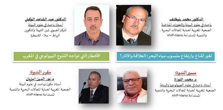 تنفيذا لبرنامج الجمعية المغربية لحماية المجالات البحرية والتنمية المستدامة (AMP-Maroc)، وفي إطار اليوم العالمي للتنوع البيولوجي وكذلك اليوم العالمي للمحيطات، نظمت هذه الجمعية ندوتها العلمية الرابعة عبر تطبيق Google Meet في مجال حماية التنوع البيولوجي البحري والساحل، وذلك بتاريخ 12 يوليوز 2020. وقد كانت فرصة أخرى مناسبة للالتقاء مع مختلف الخبراء والفاعلين والمهتمين بالقضايا البيئية الذين شاركوا في هذه الندوة قصد مناقشة مختلف القضايا البيئية المطروحة وطنيا ودوليا. في البداية وبعد أن قدم الدكتور محمد اللوزة، بصفته مسيرا، أرضية تحدث فيها عن أهمية المرحلة وعرف بمختلف أهداف، واهتمامات، وأنشطة الجمعية AMP-Maroc … رحب بالجميع ثم أعطى الكلمة للمتدخلَيْن، بعد أن قدم نبذة مقتضبة عن مسيرتَيْهما العلمية وأنشطتَيْهما الاجتماعية والجمعوية والبيئية. وقد جاءت المداخلتين على الشكل التالي: