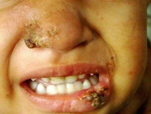 حيث يتسبب لسعة بعوض ناقلة لمرض لاشمانيا او ما يسمى بحبة الفأر (شعبيا) في حروق جلدية ودمل وتقرحات سرعان ما تنتشر في الجسم وتكون معدية وكثيرا ما تصيب الأطفال والشبان على مستوى الوجه.