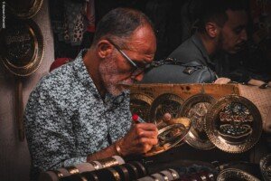 في الحي الحرفي النحاسين، يواصل الحرفيون نفس الإيقاع والرنين المتوارثة عن الأجداد في طرق النحاس وتشكيله وتطويعه تحت السنة اللهب وضربات المطرقة الشبيهة بايقاع فرقة نحاسية، داخل ورشات عتيقة يتوارثها الأبناء عن الإباء.