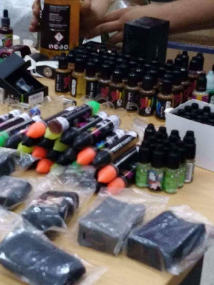 تمكنت الفرقة الجهوية للشرطة البلدية بالقيروان امس الاربعاء من العثور على مصنع عشوائي يقوم بتحضير السائل الخاص بالسجائر الالكترونية فتم التنسيق مع فرقة الشرطة العدلية بالقيراوان و حجز عدد 365 قارورة سوائل مختلفة الأحجام والأنواع ، تستعمل لاستهلاكها في السجائر الالكترونية و تبين انها مهربة ومجهولة المصدر.