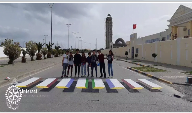 قام مجموعة من الشباب الناشط في جمعية ‘Interact Club Tunis Méditerranée، بانشاء ممر مشاة 3D للتقليل من سرعة السيارات .