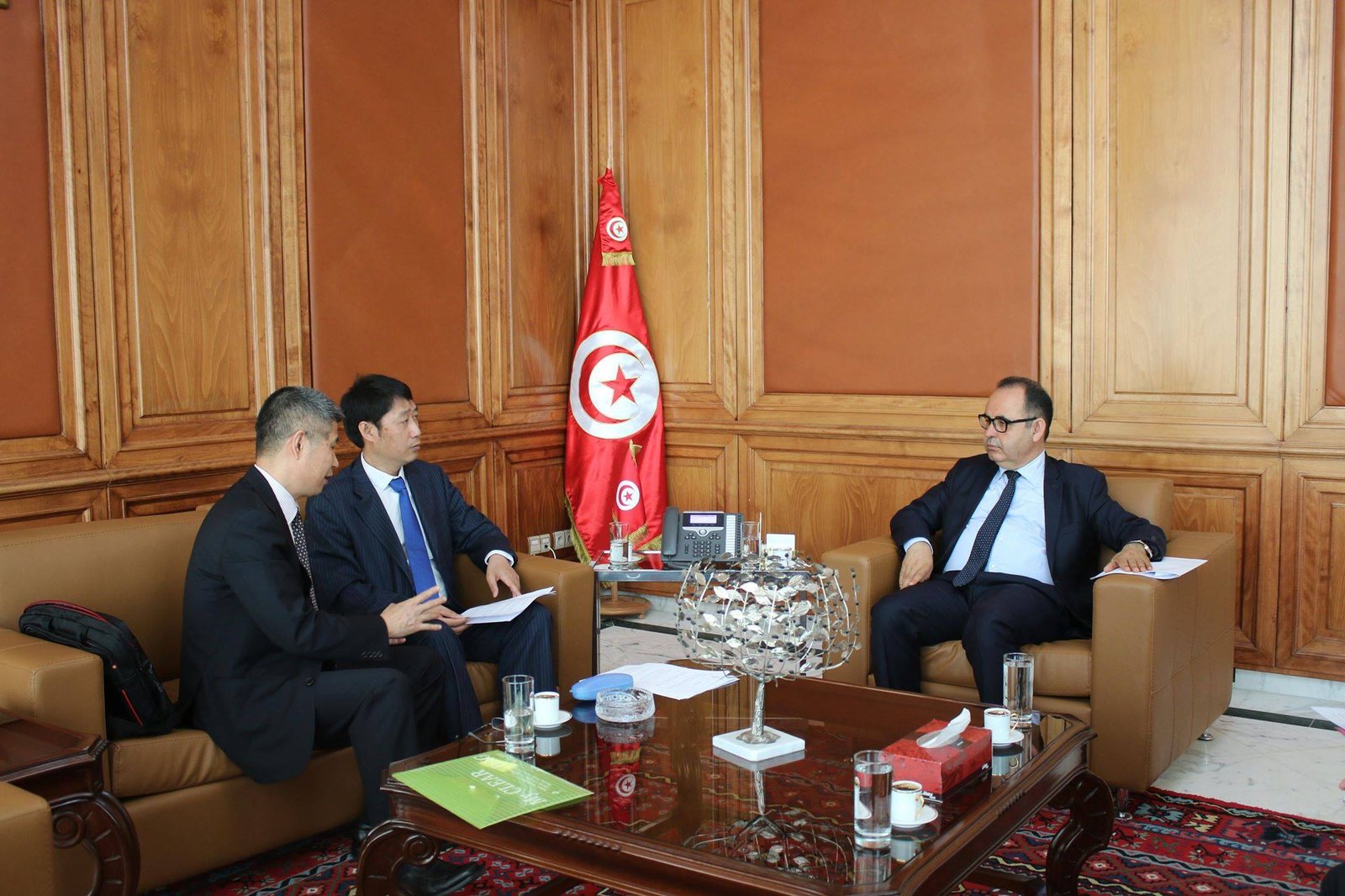 التقى مبروك كرشيد وزير أملاك الدّولة والشؤون العقارية اليوم بمقر الوزارة بوفد صيني من رجال الأعمال للنظر في الترتيبات العملية الواجب اتخاذها من أجل تجسيم المشروع الضخم للقطب الاقتصادي بجرجيس .