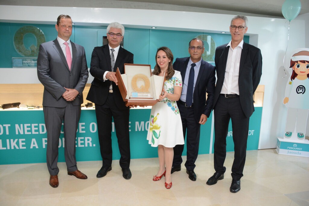 انتظم يوم الثلاثاء 08 ماي 2018 حفل بمقر وحدة الإنتاج التونسية التابعة لشركة ماركوارد الألمانية المتخصصة في تجميع وصنع الأدوات والمستلزمات الالكترونية والكهربائية للسيارات على شرف القائمين على المؤسسة اسند فيها الممثل الألماني السيد Jochen Becker جائزة الجودة الأفضل في الإنتاج (le prix de meilleur qualité de produit ) لممثل الوحدة في تونس السيد نور الدين اليعقوبي.