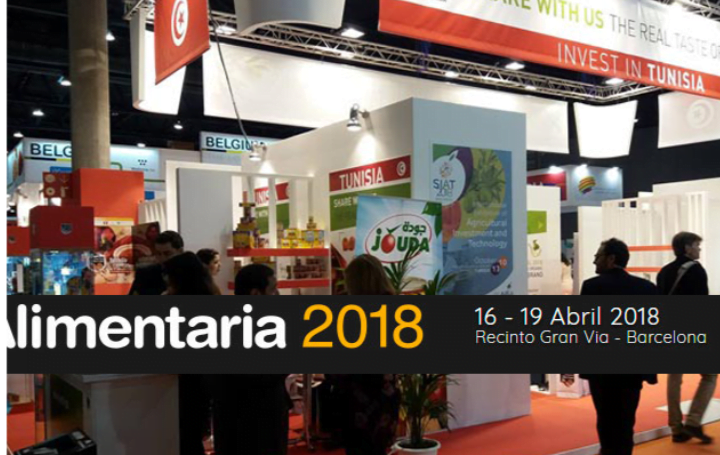 تشارك تونس بالصالون الدولي « أليمنتاريا » المتخصّص في الصناعات الغذائيّة والمشروبات وفن الطبخ، المنعقد ببرشلونة (الشمال الشرقي لإسبانيا) من 16 إلى 19 أفريل 2018.