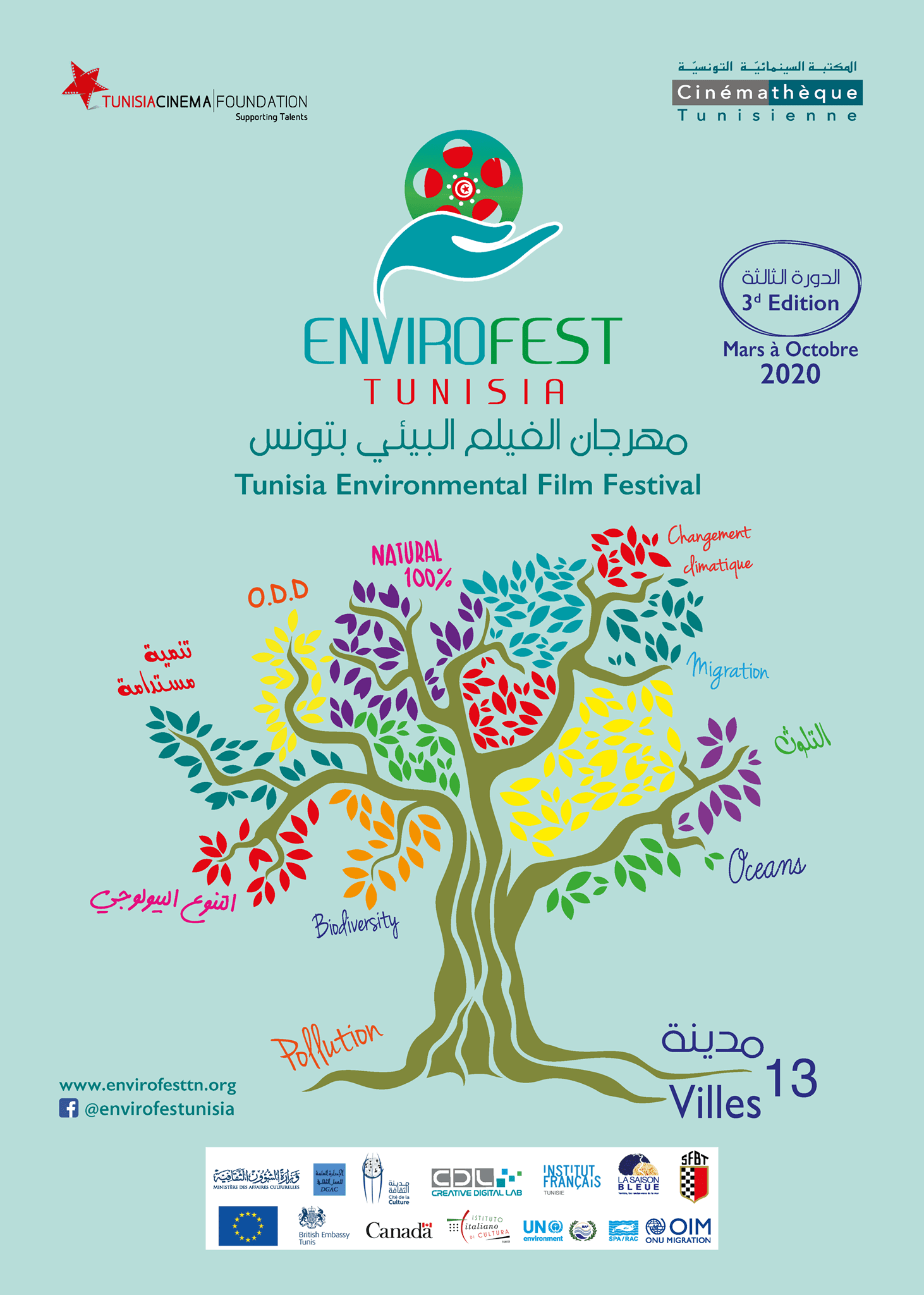 وتستقبل مدينة الثقافة من 14 إلى 20 مارس 2020 عروض مهرجان الفيلم البيئي بتونس والذي يجوب بين شهري أفريل وأكتوبر 12 مدينة تونسية.