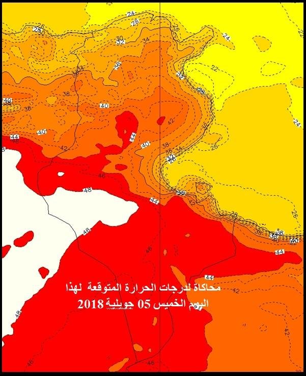 وأكد المعهد أن انطلاقة النهار تتميز بدرجات حرارة صغرى أعلى من المعدلات العادية خاصة بالجنوب كانت بين 25 و32 درجة وبرطوبة عالية مما يعطي انطباعا أوليا وإحساسا بثقل الطقس بالعديد من الجهات، الرهان اليوم هو تجاوز درجات الحرارة للرقم القياسي الفارط 48.8 المسجل بولايتي توزر وقبلي والمعطيات المحينة مازالت تؤكد هذه الفرضية.