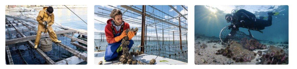 تشمل طرق الإنتاج الرئيسية الثلاث المستخدمة في المنطقة الأقفاص البحرية والأحواض والاستزراع المعلّق، في حين أن الأنواع المستزرعة الأكثر شيوعاً هي الدنيس والقاروس وبلح البحر.