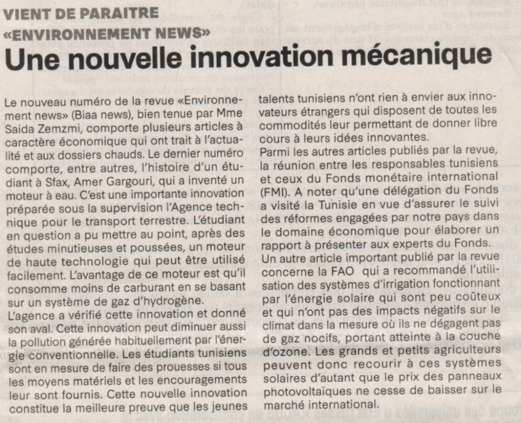 Article dans la page du journal