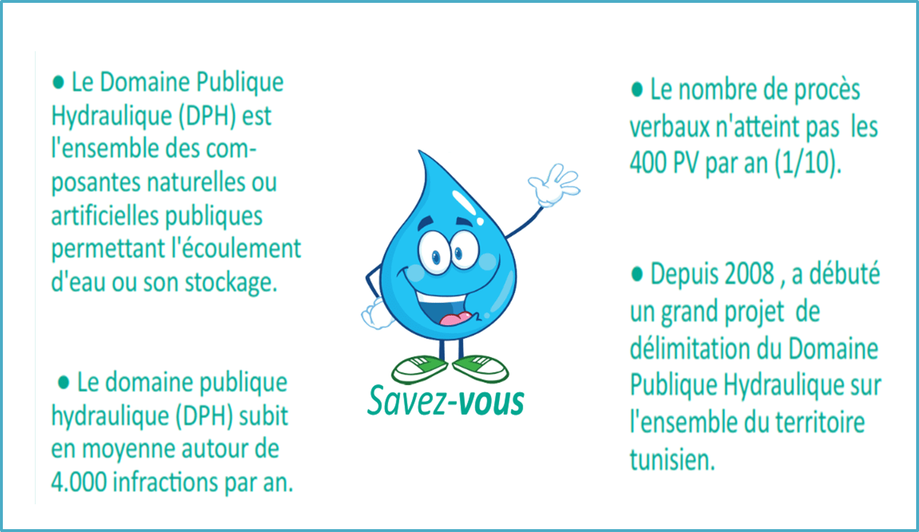Ce DPH regroupe le contenant et le contenu en relation avec l’eau qui peut être soit une eau conventionnelle (eau de pluie, les écoulements d’eau, l’eau dans les oueds, l’eau des lacs, les eaux usées, l’eau des barrages, l’eau des sources de tous types et les eaux souterraines) soit une eau non conventionnelle (les eaux usées traitées et non traitées, les eaux géothermales, l’eau de dessalement et l’eau de drainage agricole)